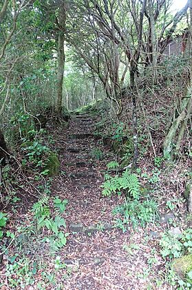 建築スペースまでは、こちらの緩やかな坂道を登ります。階段等整備されてみてはいかがでしょうか。
