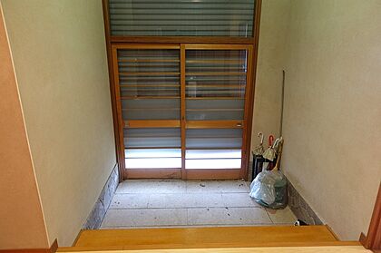 古家内部です。玄関はシャッター付き、ガラス張りの玄関です。