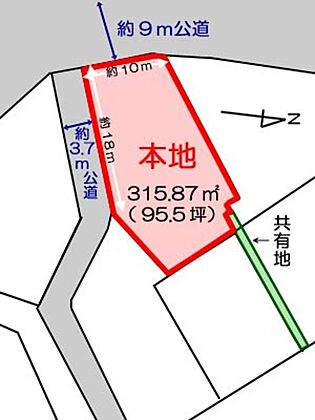 | 土地面積/坪(坪単価) | 315.87m2(登記簿)/95.72坪(7.30万円) | 代表的な接道 | 角地 公道 西 9m、南 3.7m ※詳細は備考欄をご確認ください |