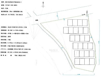 | 土地面積/坪(坪単価) | 1,113.00m2(登記簿)/337.27坪(8.10万円) | 代表的な接道 | 公道 北 6.5m ※詳細は備考欄をご確認ください |