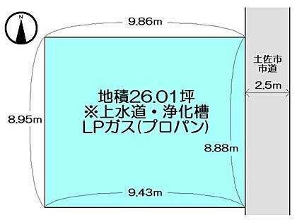 | 土地面積/坪(坪単価) | 86.00m2/26.06坪(7.70万円) | 代表的な接道 | 公道 東 2.5m ※詳細は備考欄をご確認ください |