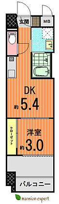 | 間取り | 1DK | 専有面積 | 24.19m2(壁芯) |