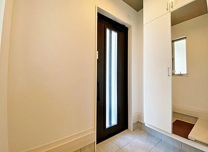 上質感漂う玄関へのアプローチ。居住者の帰り、訪れる方を優しく迎える・安らぎに満ちた生活空間を予感させる。健やかな暮らしを楽しめそう
