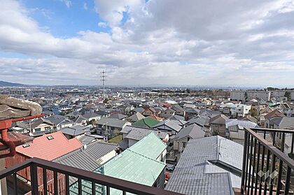 2階バルコニーからの眺め(南方向)。高台に位置しているため阪神間の街並みを一望することが出来ます。[2022年2月4日撮影]
