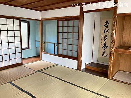 ガラス貼りの押入です。見せる収納ができます。またその隣にトイレがあります。