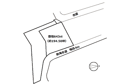 | 土地面積/坪(坪単価) | 643.00m2(登記簿)/194.85坪(9.60万円) | 接道 | − |