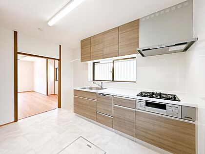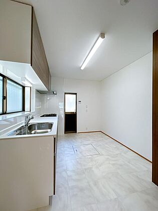 (リフォーム済)キッチンの背面には冷蔵庫と食器棚を置けるスペースがあります。家事がしやすく、キッチンスペースを広く使えますよ。