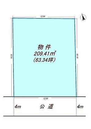 | 土地面積/坪(坪単価) | 209.41m2(登記簿)/63.46坪(22.70万円) | 代表的な接道 | 一方 公道 南 4m ※詳細は備考欄をご確認ください |
