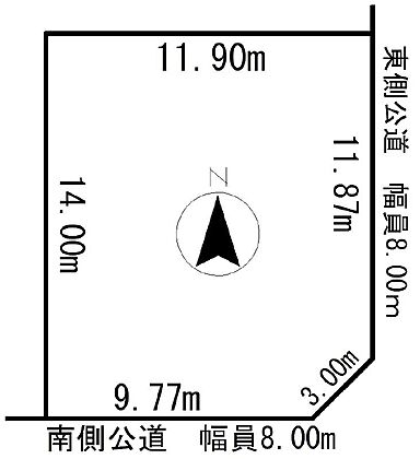 | 備考 | 【接道】 角地 ( 公道 東 8m ) ( 公道 南 8m ) | ||