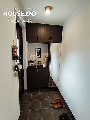 バイカラーでかっこいい配色の玄関ですね♪収納スペースもあり、玄関まわりがスッキリしますね♪