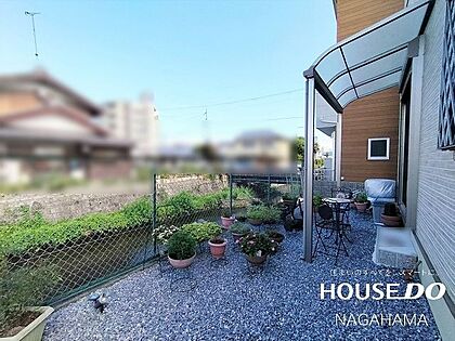 アルミテラス屋根があり、雨・雪避けも出来そうですね♪川もあり、屋外での過ごし方の幅が広がりそうですね♪