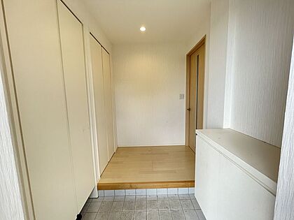 白×ブラウンのスッキリした印象の玄関です。