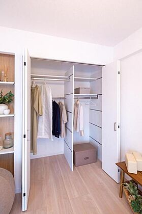 衣類を豊富に収納できるクローゼット。上部棚はカバンや帽子の収納に便利です。