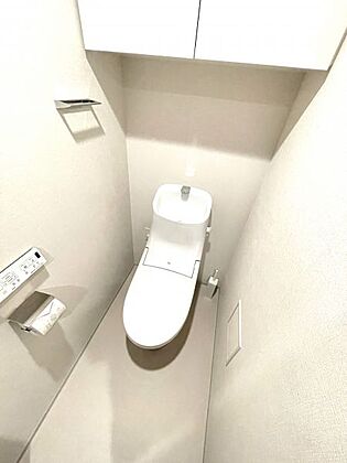 収納棚付きのトイレ♪トイレットペーパーや掃除道具などをすっきりと収納可能です◎