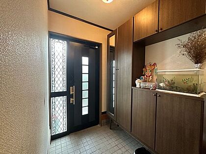 ☆採光の取れるおしゃれな玄関ドアはダブルロックキーで防犯面でも安心♪