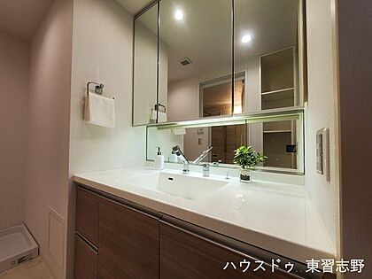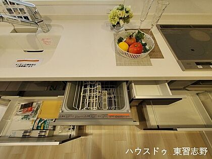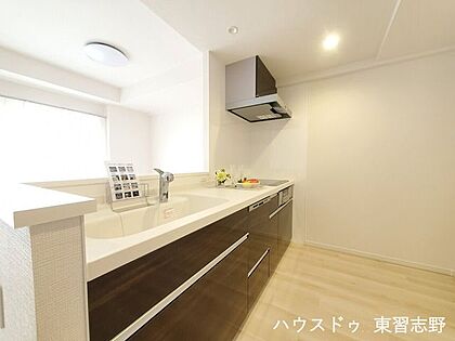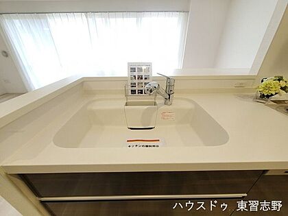 料理の幅を広げてくれる三口コンロの使いやすいシステムキッチンを採用!ワイドなカウンターで将来お子様と一緒にお料理する時も重宝します♪