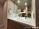 洗面化粧台は収納があり、入浴剤や洗剤・日用品をまとめて収納・・・