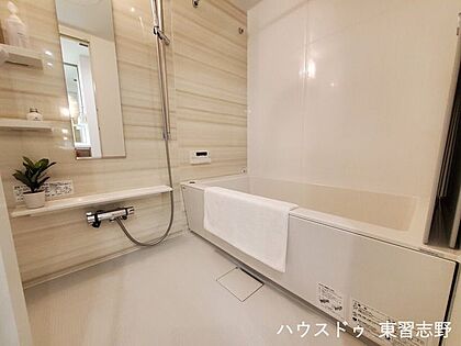 煌びやかに輝くシルバーのシャワーヘッド、高級感高まる穏やかな配色のアクセントパネルを採用し、一日の疲れを癒す事のできる広々とした浴室換気乾燥暖房付ユニットバスです。