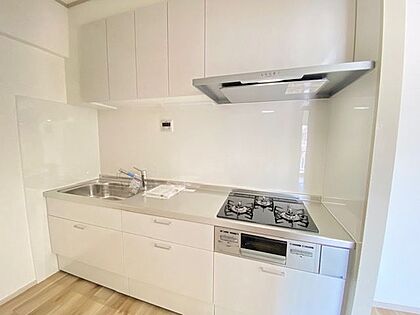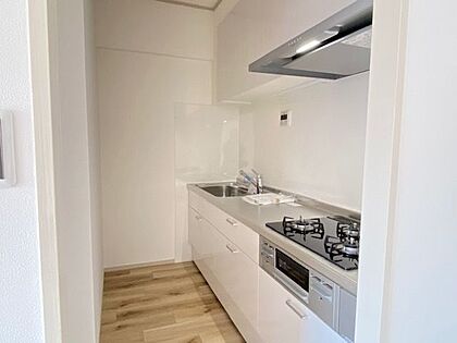 調理動線を考慮したシステムキッチンで、快適にお料理ができます!壁付けキッチンなのでお部屋のスペースをほぼ無駄なく活用できます。
