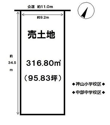 | 土地面積/坪(坪単価) | 316.80m2(登記簿)/96坪(39.60万円) | 代表的な接道 | 公道 北 11m ※詳細は備考欄をご確認ください |