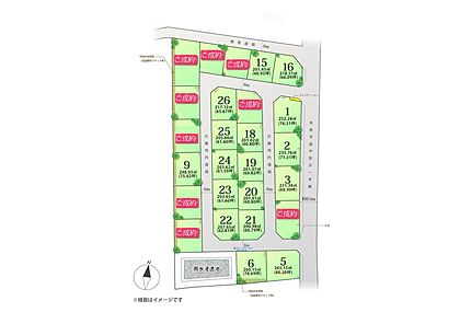 ※表示金額、面積は区画No.23のものになります。販売区画数 26区画販売価格 369万円〜605万円販売面積 200.98〜345.33m2 建築条件付き (建築条件付きとは) |
