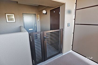 物件の玄関。門扉付きとTVモニター付きのインターホンで、安心感があるのがポイントとなっています!防犯面でも安心です!