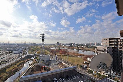 周辺はマンションや一戸建ての他、工場などもあり、敷地の北東側は「変電所」に隣接。敷地東側には天王寺川が流れています。緑豊かな『武庫川』が徒歩2分の距離にあり、河川敷ではウォーキングも楽しめます!