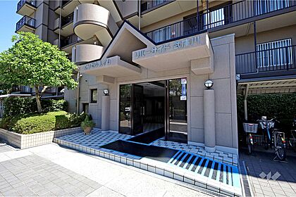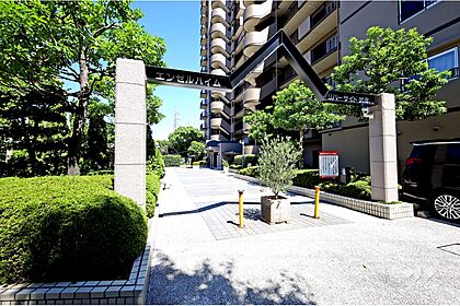 エントランス。1989年2月築のマンション。丁寧な管理がされています。緑も多くて落ち着いた環境です。