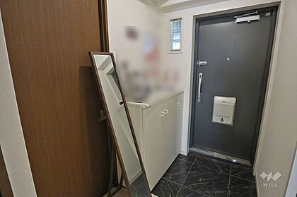 〜玄関〜シューズボックスがあり、すっきりとした印象です。ボックス上部に小物などを飾れるスペースがございます。ご家族の写真を飾るのもいいかもしれません![2023年12月9日撮影]
