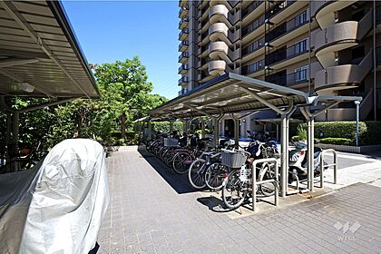 駐輪場とバイク置き場屋根がついているため、雨などで濡れにくくなっております。通路も広々としています。駐輪場とバイク置き場