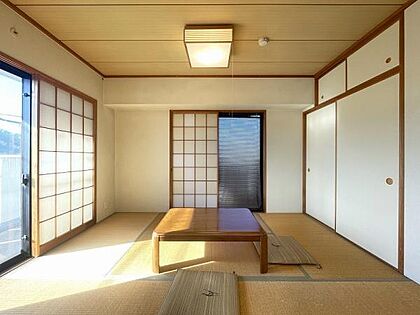•  【和室/約6帖】 リビング隣の和室。襖を開けてリビングと一体のお部屋として使うことも可能