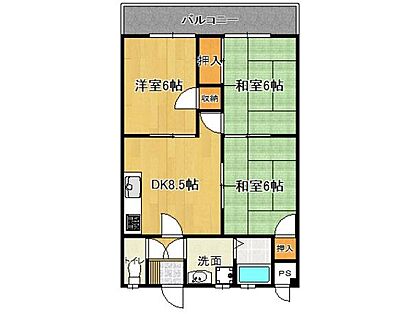 | 間取り | 3DK | 専有面積 | 57.14m2(壁芯) |