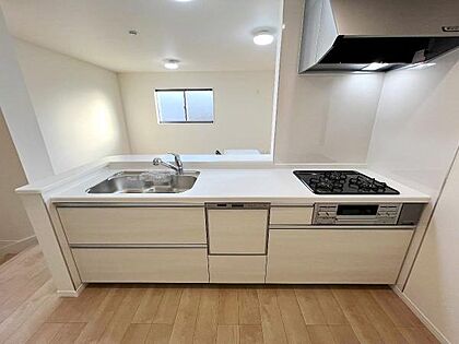 大型スライド収納付きですっきり片付けやすい、収納力豊富なシステムキッチンです。