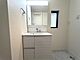 ホワイトを基調とした清潔感のある洗面台。収納部分には小物なども整理して置くことができます。