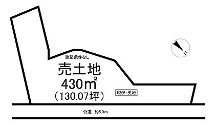 | 土地面積/坪(坪単価) | 430.00m2(登記簿)/130.3坪(0.80万円) | 代表的な接道 | 公道 北 5m ※詳細は備考欄をご確認ください |