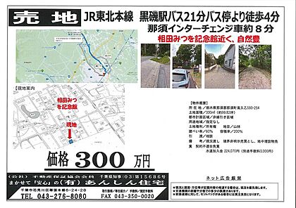 | 土地面積/坪(坪単価) | 330.00m2(登記簿)/100坪(3.00万円) | 接道 | − |