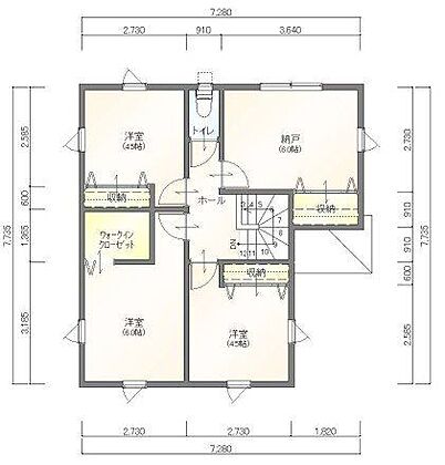 洋室6帖 1部屋洋室4.5帖 2部屋納戸6帖 1部屋1階:48.85m2 2階:48.85m2延べ面積:97.70m2参考価格:1、820万円(税込。建物工事価格です。)