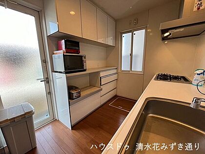1F20.3帖LDK・・・キッチンに勝手口がついているのでリビングを通って玄関を出て、ゴミ捨て場まで持っていく必要がありません!