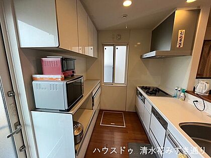 1F20.3帖LDK・・・キッチン背面にも収納が備え付けられているので、ごちゃごちゃして物が見つかりにくいキッチン回りもスッキリ収納して使いやすくなりそうです(^O^)/