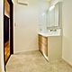 洗面台はシックで上品、機能性も◎です!