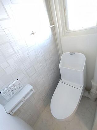 小窓付きで換気も十分に可能なウォシュレット付きトイレ
