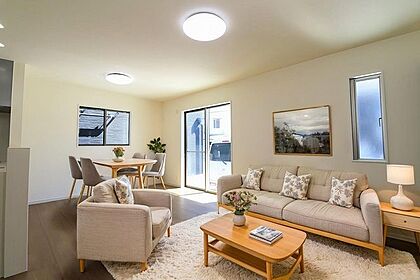 【リビング】白を基調とした室内で、清潔感と開放感があります!※イメージにつき、家具、家電は価格に含まれません。