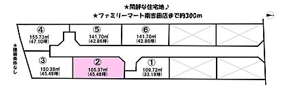 | その他 | ●建築条件なし ●所有権 ●平坦地 ●更地 ●コンビニ 400m以内 ●中学校 800m以内 ●子育てに便利な施設が充実 |