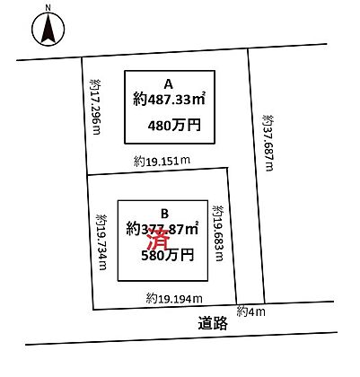 | 土地面積/坪(坪単価) | 487.33m2/147.68坪(3.30万円) | 代表的な接道 | 南 5m ※詳細は備考欄をご確認ください |
