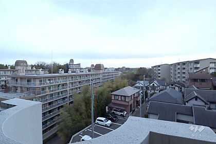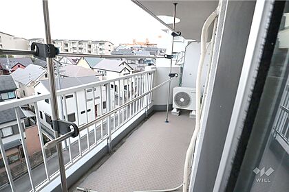 バルコニーの様子。かなり広いスペースがあり、洗濯物を干すだけでなく、家庭菜園なども楽しめそうです。周辺は低層の建物が中心の為、日当たりも良好です。