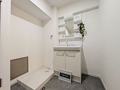 収納力のある洗面台のため、洗面所が整理整頓できますね!細かい化粧品などの収納にも便利です洗濯機置き場もありです
