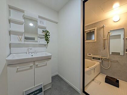 綺麗なバスルームで一日の疲れをいやせますね。しっかり換気が出来る窓付き。湿気がこもりやすい浴室も清潔に保てます。