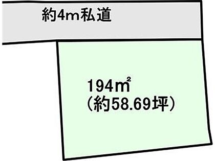 | 土地面積/坪(坪単価) | 194.00m2(登記簿)/58.79坪(9.90万円) | 代表的な接道 | 私道 (位置指定) 北東 4m ※詳細は備考欄をご確認ください |