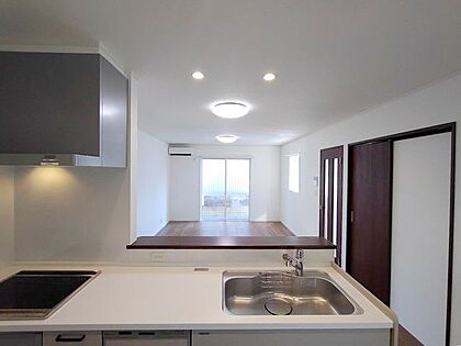 対面式キッチンで家族の様子をうかがいながらお料理できます。特に目の離せない小さなお子様のいるご家庭は安心してお料理できますね。