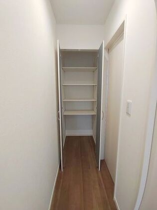 廊下突き当りの収納。掃除用品やペーパー類のストック置き場として便利です!